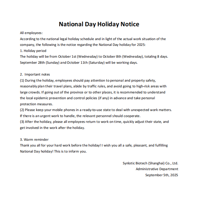 Op deze prachtige dag, of u er nu voor kiest om ver te reizen om de prachtige landschappen te bewonderen, of naar huis terug te keren om bij uw dierbaren te zijn en te genieten van gezinsgeluk; Of je nu samenkomt met vrienden om te kletsen, of gewoon alleen van een vredig moment geniet, moge deze vrijheid en vreugde altijd in je hart blijven.