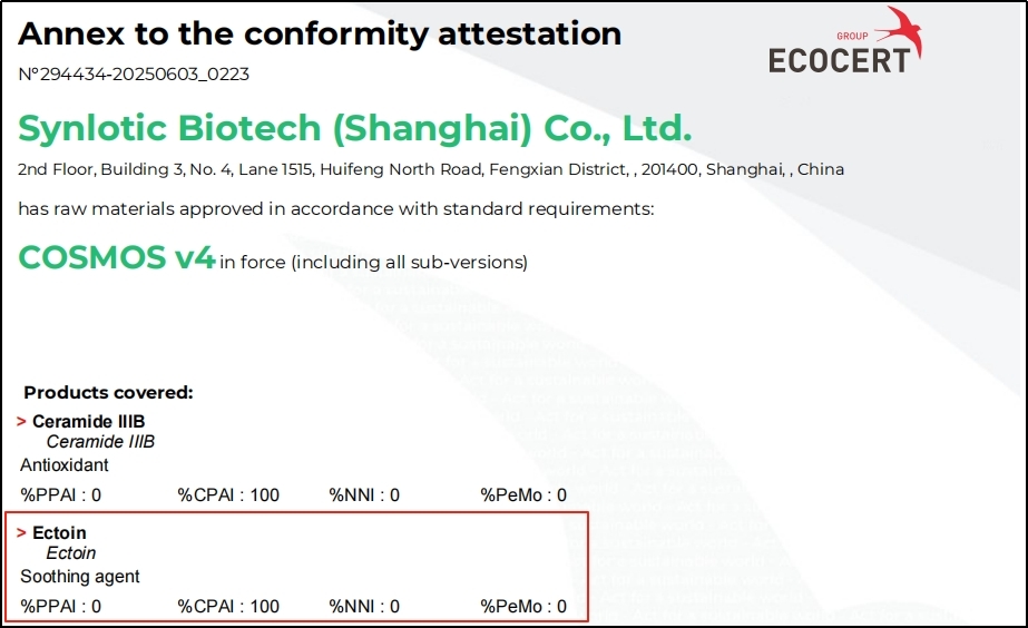 Onlangs heeft Yikeduoyin, geproduceerd door Shanghai Yunluo, de EU COSMOS natuurlijke certificering verkregen, toegekend door ECOCERT in Frankrijk.